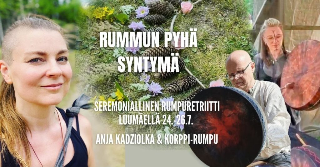 Luumäellä metsien keskellä, elementtien äärellä, vahvassa luontoyhteydessä, pyhässä seremoniatilassa, syntyy voimallinen rumpusi. Jos oman rummun synnytys tämän luettuasi sinua kutsuu.